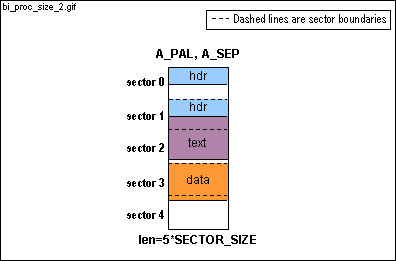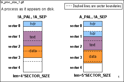 Various sizes need to be patched into various locations (see patch_sizes() on line 7160). However, if the kernel flag K_HDR flag is set, this patching is unnecessary and the kernel instead uses the headers to determine the sizes. | ||